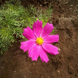 昨年秋のコスモス。 種が跳んで生え出し、もう花が咲いています。