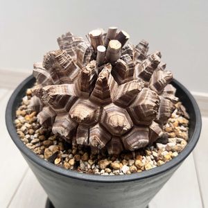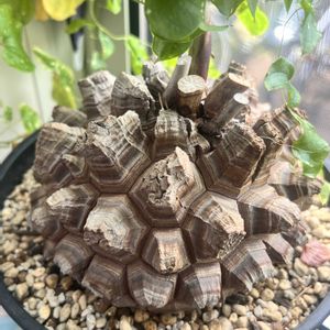 この時期は亀甲竜が多く販売されていてあっちでもこっちでも購入したくなってしまいます🫢 そろそろ… 置くところに限界が…😵💫 この株は三角形です🤷🏻♀️ 将来が楽しみ過ぎて購入してしまいました😂 亀裂ガッツリタイプです💪🏻 早く大きくなるといいな〜。 うちはまだ植え替えをしてない 大株2つ意外は 私のお気に入りの土に植え替えをしてありますがやっぱり成長速度にはムラがあります🤔 このままでも可愛いから 元気でいてくれればそれでいいんですけどね🤭