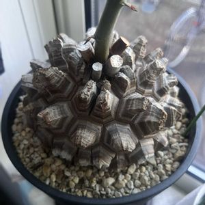 今年も花は咲かなかった 長谷川園芸産の亀甲竜。 雌であって欲しい🫢🫢 突起が伸びてきて 長谷川さんのInstagramにあるような親株達に少しだけ似てきた様な…😌 もう少しでお休みモードだけど まだまだ水を吸い上げています🚿 花が見れるのは何年後かな🌸