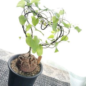 ディオスコレア エレファンティペス 亀甲竜 どんどん蔓と葉を展開していっています。 最近湿度がヤバくて鉢が全然乾きません。 ベランダが温室というかサウナ状態です。 先月は1日2回水遣りをしてもすぐに乾いていたのですが、今月は例年の秋の水管理とも違って水加減に気をつけないと根が腐っちゃいそうです。
