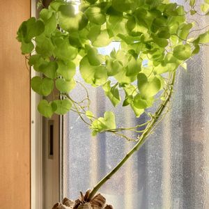 亀甲竜①号の今はこんな感じ🐢💚 ちょっと困った事態に😣 ゆっくりペースだけどまだまだこれから👏🏻 中心の太い茎から根元で左右に出てるツルが枝分かれしながらぐんぐん伸びてる真っ最中🌿 柔らかなハートにさっそく癒されてます🥰 透け感が素敵♡✨️ 今年も昨年に劣らずワサワサに茂ってほしいなぁ💚 で、順調に見えてえらいこっちゃな事態に😳 2枚目📷️が分かりやすいけど真ん中の太い茎が9月伸びてきてた時にハダニが付いてるのに気付くのが遅れてしまって🕷️💦 35㌢程伸びたけど茎が黒く変色、先の方から枯れ始めてて、半分まで進んでます😣 これ根元に向かって枯れていくと、根元近くから左右に出てる元気なツル(脇芽?)も枯れてしまうんじゃないかと😰 今枯れてる所でカットした方がいいのかどうか✄ カットしても進むかもしれないけど😵💫 亀さん育てられてる方、植物育てられてる方ならどうされますか? 良かったらご意見を😫 なんとか助けたい🙏🏻💦