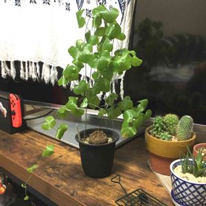 昨日のトットシーンズさんでの収穫😄 右手前の「小松波」 真ん中の大きな「ピンクエイジ」 以前に買った亀甲竜にもツル対策をしました😊 黒ポットに合わせて、セリアで良いものを発見💞 鉢受けにぴったりのが、2つで100円😆 きっちり6個入るトレイも100円💞これ…何個も買ってしまいそう✨ オベサは、もしかするとご臨終になっているかも。 寒さに弱かったのに、外に出したままでした😂