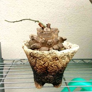 壺のような鉢を見つけた。 和風で激シブな鉢には男前塊根植物の亀甲竜さんを住まわすことにした。 盆栽ぽくてすごくイイ(*´∀`*)