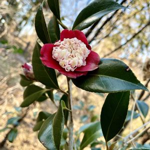 ボクハンツバキ・ガッコウ(ツバキ科)神奈川県より 漢字名:卜半椿・月光 2025.02.15撮影📲 江戸時代辺りから、ヤブツバキの品種改良により、人気になったとか…🌺 ツバキは小鳥達にも人気のようで、綺麗なままのお花になかなか出会えず.ᐟ.ᐟ