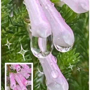 こんにちは😃 昨夜の雨が今日は雪になる予報でしたが 朝だけ雪がちらちらで晴れました☀️ 昨日の午後に雨が時々止んでいたのでその時にお花を覗いたら ありました💗 可愛い水滴がエリカのお花の先にもう溢れんばかりで シャッターチャンスで レインコート着て📸しました❣️ 後ろのお花も映っていて綺麗でした💓 他にももっとピントが合っているのもありましたが後ろのお花が撮れている方にしました😅 にゃんママさん主催の 🏷ちっちゃいものクラブ shizukuさん主催の 🏷水滴の水曜日 に参加させて下さいね😉🤲 見て頂きありがとうございました😊🙇♀️💖
