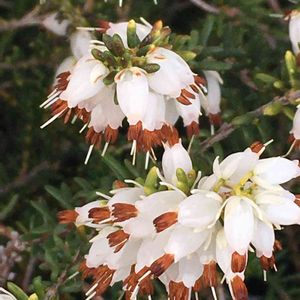 今日、お出掛け先で 🌸この花に出会いました エリカ・クリスマスパレード(ツツジ科) 花言葉 謙遜・幸運 昨年 素敵なこの花育ててました 悲しいことに、梅雨が終わる頃✨に〜 初めは白く、🤍楚々として〜 寒さが厳しくなる頃 💓淡いピンクに〜