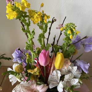 菜の花やチューリップ🌷が咲いて来ました。 華やか。 その言葉どおり花が開き明るく人目につけるさまですね。