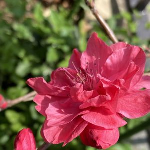 今朝は久しぶりの雨降り☔️ わが家の濃いピンク色のあでやかと 言う言葉がぴったりのハナモモさん🌱 今年は花が少なめですが、、写真より実際の色めはもっと華やか艶やかです! 鎌倉彫の師匠の庭の枝を頂き 挿し木して30年、家の建替え時に 大きな木は移植できず、、挿し木で 仮住まいへ、、 それから3年みるみる大きくなって きました まだ、生け花には可哀想で✂️できませんが見事な花を咲かせてくれました🌱🎵 昨日の撮影です♪