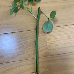 葉付きの状態で水耕栽培のバラの枝 とうとう発根してくれました〜👀 チョロっと3本出ているのが、なんとも愛おしいです💕