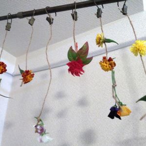 とりあえずうちにある花でリースの為のドライフラワー作れるか実験スタート! カーテンレールとレールの間に突っ張り棒固定させて、セリアで売ってるカーテンの布挟むリングかけて、出来るかどうかわかんないけどドライフラワーにしてみた。 ケイトウはドライフラワー向きらしい。 ビオラは押し花は聞くけどドライフラワー聞いたことないから多分ダメでしょうね。 マリーゴールドも黄色と赤でどういう違いになるかわからないな〜 ほんとはシリカゲル使った方がいいでしょうけどね😌 今度買おう。 足りない花材を直売所で買ったり、公園でよさそうなもの落ちてたらそれ使うのもありかな〜とか思った 実験は続く!