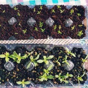ノースポールのその後です🌱 ピートモス系(写真上) 培養土(写真下) 芽はピートモスの方が早く、遅く出た培養土はその後ぐんぐん育ちました🌱 次に種を蒔くときは 培養土にピートモスを薄くのせてみようかな🐶