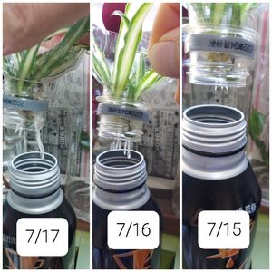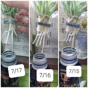 ペットボトルに差していたものも、慌てて空き缶へ やっぱり一気に根っこが延び始めた✨ それまで全然だったのに🍀