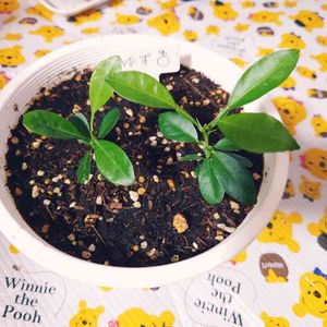 台風に備えてベランダの花や野菜を室内に移動しました🌀 こちらはゆずです🍊妻が頂いてきた物を食べた後に、種を実験的に植えてみた物です🌱