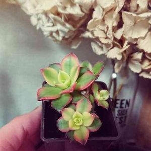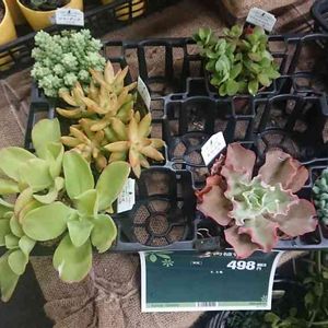 はい、さっそく狩りにww とってもお買い得なのGET💓✨ ほとんど通販オンリーでされてるA.N.Sさんの所の苗を直売所で安くお裾分けしていたので、GETしてきました~💓 全~部300円⤴️⤴️ 一つだけ別のお店で!ついに!!! 七福神GET⤴️⤴️⤴️⤴️⤴️ し!か!!も!!!! 150円。°(°´ω`°)°。✨✨ ヤバイ!!!!!!!!!嬉しすぎる⤴️💓 下の一番右は黄麗???爪蓮華??? どちらでしょう??