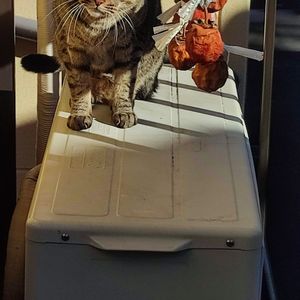 毎年ベランダで干してますが、 初めて梅吉が柿に手を出そうとしています。 3週間を目安に、あと1週間干してみましょう!