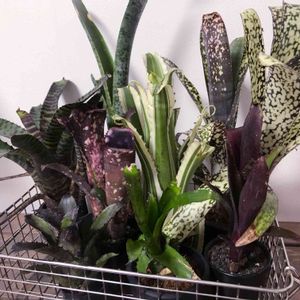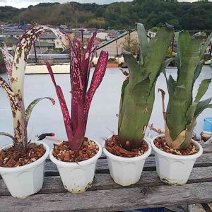 昨日プラ鉢に植え替えたタンク達。 赤系のビルベルギアもっと欲しくて震えてる。