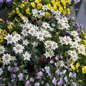 ハローワーク近辺にて フランネルフラワーとビオラの寄せ植え