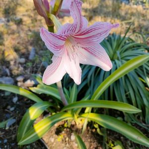 写真2枚目 ついに霜が降りる時期になってきた。 写真1枚目 そんな寒空の野ざらし地植えでも生きているアマリリスさん。 右奥には今まで何度か投稿しているマンガベバッドヘアデイさん。