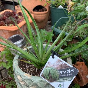 今日のマンガべ・バッドヘアデイ🪴 アンバサダーに選んでいただいてひと月がたち、マンガべさんもかなり成長しました😊✨ マンガべは水管理がとても楽チン😁‼️ 他の多肉のように乾かしぎみでもOK‼️ 草花と同じように水を与えてもOK‼️ 更に‼️雨ざらしの場所でもOK‼️……と素晴らしい育てやすさ😆🎶 どこまで大きくなるのか楽しみです😘 #PW、#ガーデリンク、#マンガべ、#PW育てた、#PWアンバサダー