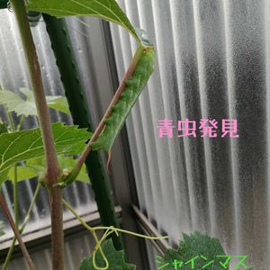 シャインマスカットに3匹の青虫発見!! フンらしきものも落ちていました。