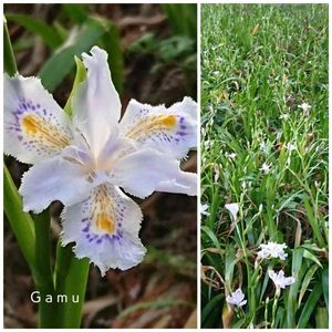 シャガ群生 アヤメ科 アヤメ属 多年草 中国原産 古くからの帰化植物 三倍体(長すぎるので説明なし)の為種子が発生しない、よって、日本に存在するシャガは同一の遺伝子を持つ。そのためその分布の広がりは人為的に行われたと考えられる。 ウィキペディアより