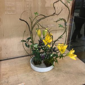 今週のお稽古です。 アレカヤシを瓶花で思ったところにとめるにはまだまだ修行が必要です。四苦八苦して、結局先生にやっていただきました😓