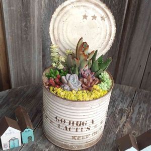 おはようございます😉 今朝の気温3℃ 業務用big缶に寄せ植えしました💚 やっぱり楽しいわ🎶