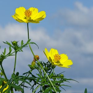 爽やかな秋空に一重咲きのキバナコスモスが気持ちよさそうです✨