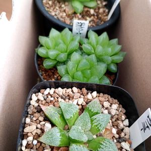 昨日の和歌山植物公園緑化センターの ≪古典植物と山野草展≫で アハッ!山野草には手が出ず〜 多肉クン ハオルチア3種お買い上げ〜😅 ①下よりウィミー 光オブツーサ デルジアーナ ②デルジアーナに花芽がのびて〜ワクワク!🥳 (1つ300円でもお安いのに〜選び迷ってたら〜3個で500円に〜✌🏼) ③④蓼科で去年見た🤍ハンカチノキ(ミズキ科)落葉高木で〜 ⑤GS始めたばかりの5年前、育ててた💛コンロンカ(アカネ科)こちらのハンカチノキは通称です