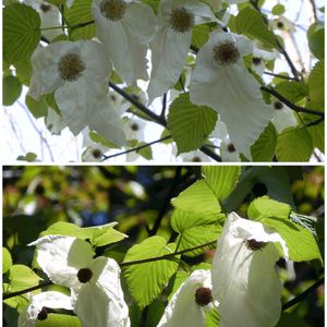 ハンカチの木 ミズキ科 ハンカチノキ属 中国原産で四川省・貴州省・湖北省西部・雲南省北部の1500m-2200mに分布している。中国では「珙桐」(大きな桐の木)や「鴿子樹」(鳩の木)と呼ばれ、国家一級保護植物に指定されている。属名のダビディア (Davidia) で呼ばれることも多い。 花についた白い大きな2枚の苞葉が垂れ下がりよく目立つため、日本では「ハンカチの木」や「幽霊の木」などと呼ばれる。 (ネットより) 花が咲くまで10年程かかる様ですが、最近は1年ほどで咲く園芸種もでているようです。