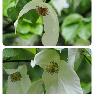 ハンカチノキ 大小2枚のヒラヒラしてる 白いハンカチをもつ樹木です🌲 白いのは苞です。 毎年タネからの発芽に挑戦してますが、 なかなか難しいです💦 今年も播種しましたが、 まったく発芽する気配はないです( ̄▽ ̄;) 発芽に一年かかる場合もあるので、 もう少し様子見ですね😊
