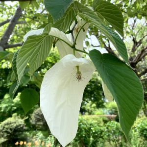 初めて見た「ハンカチの木」です🤍🌿😃 ハンカチの木は、ミズキ科ダビティア属(ハンカチノキ属)の落葉広葉高木です。もともと中国の標高2000mほどの高地に自生していた植物で、特徴的な見た目の珍しい樹木です。 「ハンカチの木」という名は、白い2枚の苞がハンカチのように開いて揺れる様子から名づけられました。また、白いハトの群れがとまっているようにも見えるため、別名「ハトノキ」とも呼ばれます🕊 幽霊の木とも👻 🏷白い貴婦人✨ 🏷8日は葉っぱの発表会 🏷白い水曜日♡