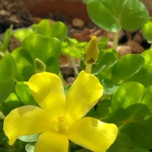おはようございます☔ 💛🌿オキザリス🌿💛 12/2 久しぶりの晴れに、開花してくれました⤴️💛 オキザリスの存在を忘れていて、緑の葉が出て来ていたので水をやったら蕾も出始め、お日様を見たら開花してくれました✨✌🥰٩(๑❛ᴗ❛๑)۶