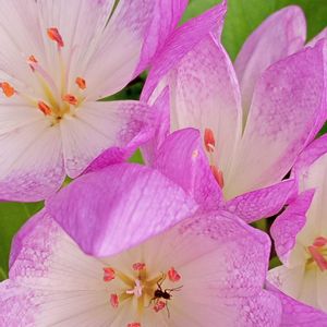 1 突然 咲き出した コルチカム 💗💗💗 2 スピードリオン 3・4 秋明菊 5 オシロイバナ ビンク色 色々です 💗🩷💗