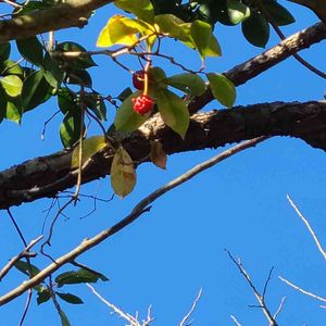 水遣りの途中で。 今年の節分の時に挿した柊に実がついた。