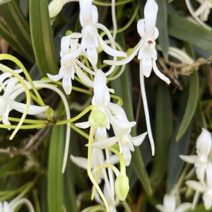 自宅のまきの木に着生したフウランです。純白でとても綺麗💕 例年は気づかない程ですが、今年の勢いは凄くて、2階から見下ろすと 真っ白い塊。 私の子どもの頃にやって来て、もう何十年も😊 今は木の周り半周にもなる程育っています(4枚目)