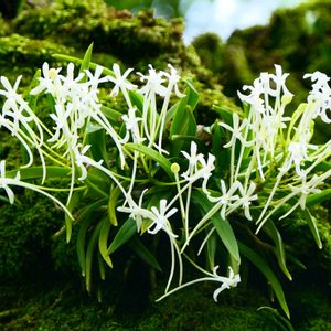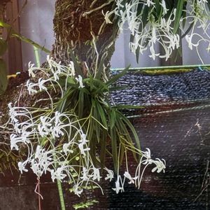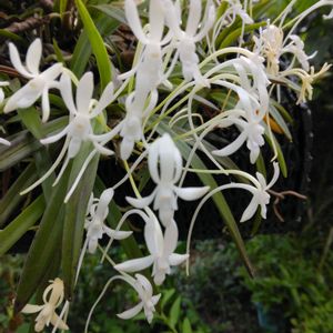 🌞✨こんにちは✨ 我が家の 大きなシンボルツリー🌳には, 既に咲き終わった🌸🌸石斛のお花の下側…に着生させた 【風蘭】 石斛と違って…槇の木を屋根にして,日陰で ひっそりと優しげに咲いています🤗💕
