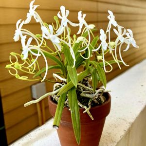 "月曜日を爽やかに" 猛暑のなか、庭のフウラン(風蘭)が今年も爽やかに咲いてくれました。 甘い香りが漂ってます。 📷️ 2025.7.6