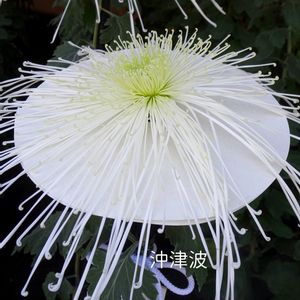菊花 「泉郷彩り」 (キク科) 大菊の管物(花弁が細い)で、更に管物の中でも「細管」のようです。 花弁を整えるために、輪台を付けて栽培されます🌀細い花弁の先端がクルリン!と巻き込んでいると、「玉物」と呼ばれ珍重されるとか。 大船フラワーセンターにて撮影📷