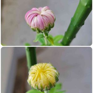 こんにちは😊 あれから少し経過しましたが 菊はじわじわ咲く派のようですね🌼 *・_(:𝕠ノ∠)ノ″ ズコー まだもう少し時間がかかりそうで、 とても焦らされています ((っ•ω•⊂))ウズウズ(笑) でもすごく綺麗な色が ハッキリしてきたので、 とっても楽しみです🤭