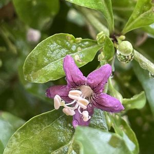 〜クコの花と実〜1枚目 ナス科クコ属の落葉低木 中国、朝鮮半島、台湾と、北海道から沖縄までの日本全土に分布 花期は7~11月 果実は長さ1~2.5㎝で、赤く熟す 薬効が高く、果実、茎、葉の全草が生薬となる お茶やドライフルーツなど食用にもなる 杏仁豆腐にちょこんと載ってるあの赤い実はクコの実です 花言葉「誠実」「お互いに忘れましょう」「過去を水に流す」 2枚目3枚目 ルエリアパープルシャワー 昨年強剪定をしたのでなかなか咲いてくれませんでしたが、やっとこの頃咲き始めました とても涼しげに次から次に咲いています 一日花です キツネノマゴ科ルイラソウ属 花言葉「魅力」 4枚目は 以前にも投稿したブルースターです🩵 ずっと酷暑の間も乗り越えて咲き続けています 花友さんに種を頂いた大切な花 🏷️美しく青きドヨウ 🏷️癒しの薄紫