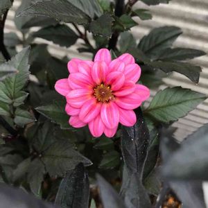 可愛いピンクのプチダリア💗 ちょっと遠慮して低い位置で咲きました😊 鮮やかなピンク色とシックな銅葉の組み合わせが美しいです🤎