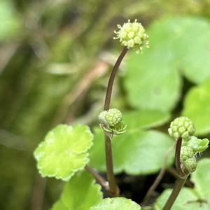 おはようございます⛅️ お寺の裏山にて 古い切り株に苔と一緒に生えていました。 オオチドメ 葉は、腎円形やや厚く表面は光沢がある。切り込みは浅く基部は深い心形。葉の上に花茎を出し球形の単散形花序をつける。 在来種 ウコギ科チドメグサ属 花期 5〜7月 4️⃣ ツルアリドオシ 近くにポツポツ見えました。 5️⃣コアジサイ 下から見ると色がキレイです🩵💜
