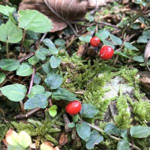 パワースポットに行ってきました 森の中。 緑に囲まれた場所でコケの緑と小さな赤い実 ツルアリドオシ ヤブコウジ 赤い実はやっぱり可愛い💕