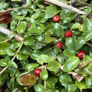 ツルアリドオシ 「千両 万両 有り通し」 お金がいつもある♫目出度い!ということで、アリドオシは一両🧧 そのアリドオシに花も葉も実も似ていて、ツル性なのがツルアリドオシで、一応 目出度い♫ 赤い実には花の萼片の痕が2つの穴として残っている⭕(2、3枚目) 茎に鋭い棘を持ち、「小さなアリでも刺し貫く」というのがアリドオシが一両と名付けられた由来の一つらしく 本来の意味からすると棘のないツルアリドオシは一両ではないのですけれど🔴(´•᎑•`)(1、4枚目)