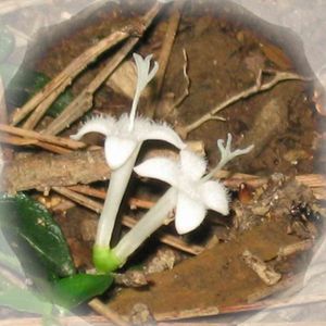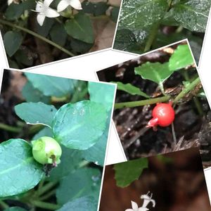ツルアリドオシ 二個対の花で一つの花になり、一つの実になり 実には二つの花が咲いた時の跡が残る不思議な植物です。