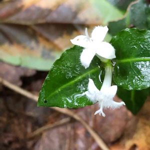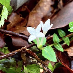 2020/07/24 谷川岳 西黒尾根より ツルアリドオシ 蔓蟻通し アカネ科 ツルアリドオシ属 必ず2つ花をつける 可愛い〜