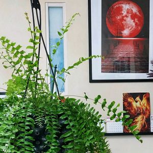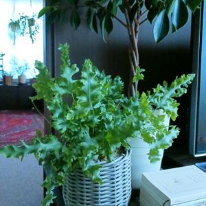 日光浴の為ダバナを窓際へ移動 空いた場所に普通のシダを配置したら ミャクミャクが喜んだ♥️ 確かにスッキリした