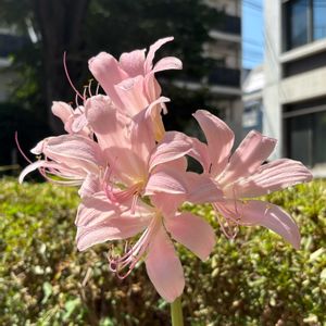 こんにちは🙂↕️ 今日も暑いですね〜🥵💦 これから単発のお仕事、有料老人ホームで高齢者に絵画の講師のお仕事で電車🚃に乗っています❣️ 1️⃣2️⃣は、火曜日、本業の在宅医療🩺の介護のお仕事で利用者さん宅の近くで咲いていました【ナツズイセン🩷】 3️⃣有料老人ホームでの絵画の講師のお仕事で高齢者が描いた絵を100均の額縁に布を包んで手作りの額に額装してみました😅今日で、教室が終わるので プレゼント🎁