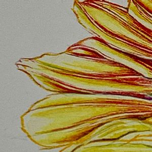 未完の線で描いていた花びら やっと、何とか 完成しました。 脇ちゃんに、ワガママ言って育ててもらった、ありがたい、愛情たっぷりな 素敵な 赤いヒマワリ。